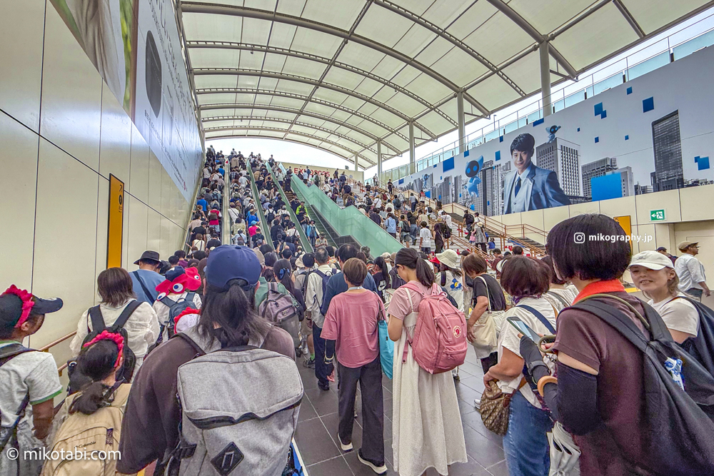 午後2時ごろに夢洲駅に到着。エスカレーター付近は混雑していましたが、意外にも東ゲートは待ち時間ゼロでスムーズに入場できました。