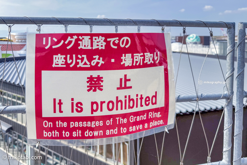 と悩みながら大屋根リングの上を歩いていると、花火鑑賞に関する注意書きを発見。