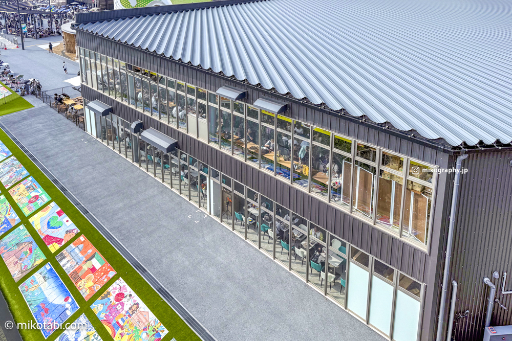 ちなみに、大屋根リングの上からはウォータープラザ横のレストラン2階にある花火が見える席も発見。冷房も効いていそうで、こちらもなかなか快適そうでした。