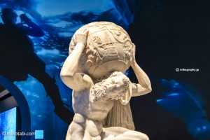 展示品も多く、ガラスケースの中には金色に輝く“金のミャクミャク”も。