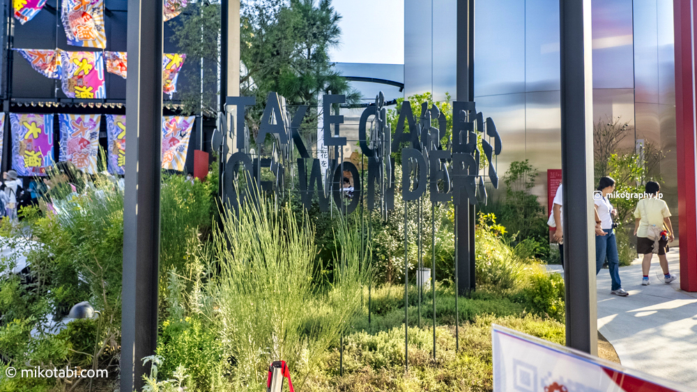入口近くには、巨大な“ミャクミャクぬいぐるみタワー”が登場し、思わずカメラを向けたくなるフォトスポットに。