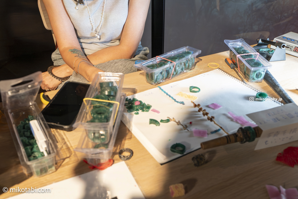 さらに奥では「ROMANIAN JEWELRY CRAFTED WITH LOVE」というワークショップが開かれてており、訪問時には4〜5人の参加者がジュエリーを制作の真っ最中。