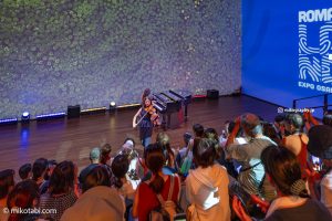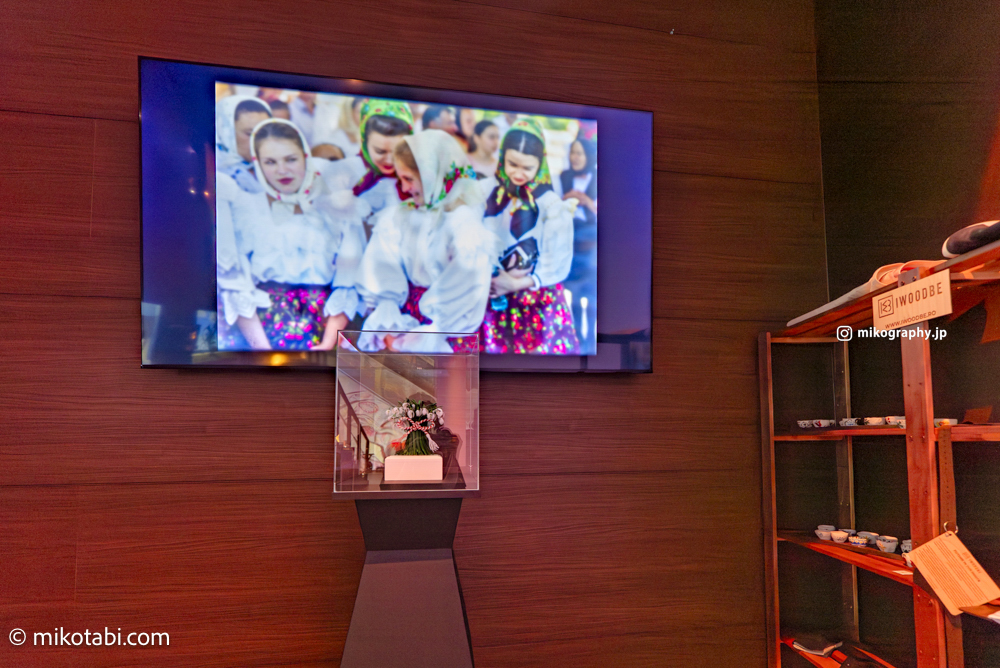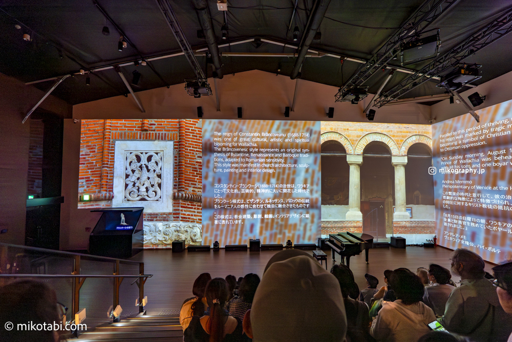 大型プロジェクターに映し出されるのは、ルーマニアの自然や文化を象徴的に描いた映像。