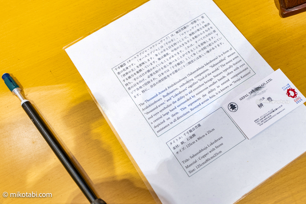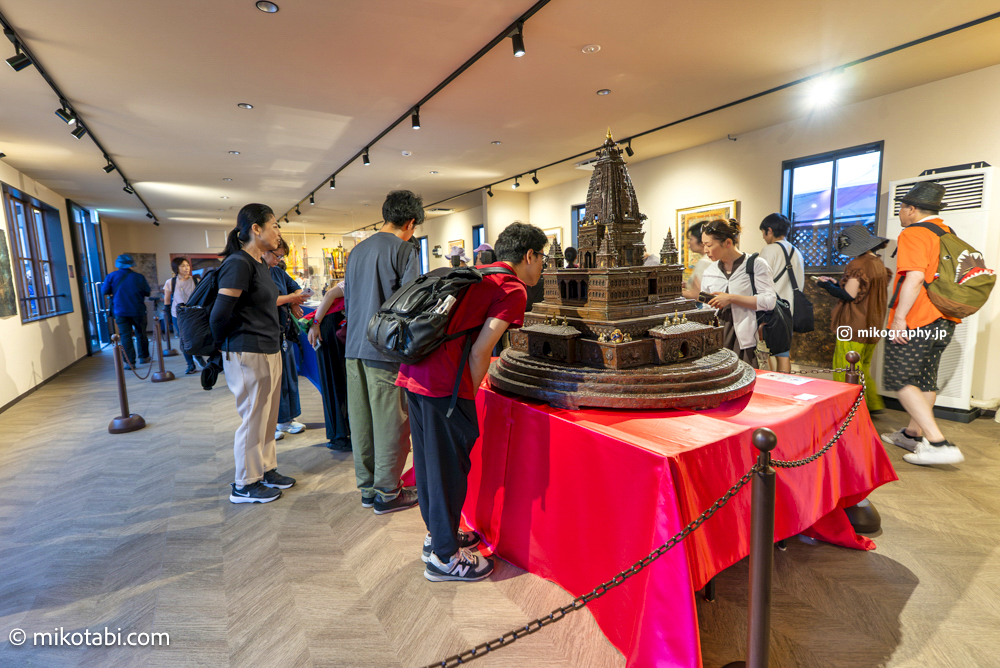 壁際には、ネパールの伝統工芸品やショップなどが並び、展示と一体化したような構成のパビリオンです。