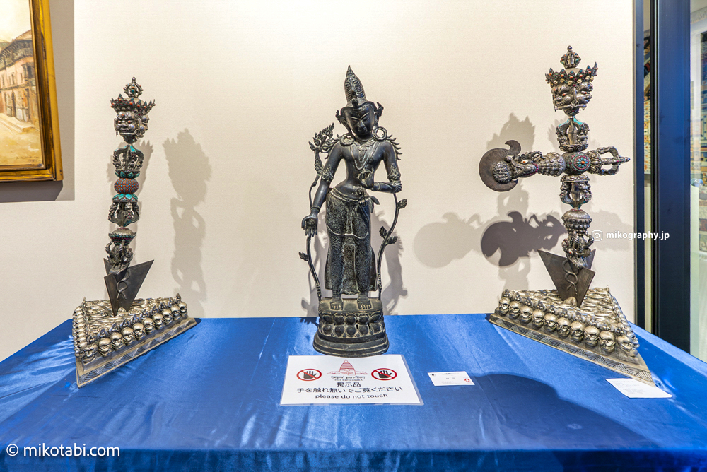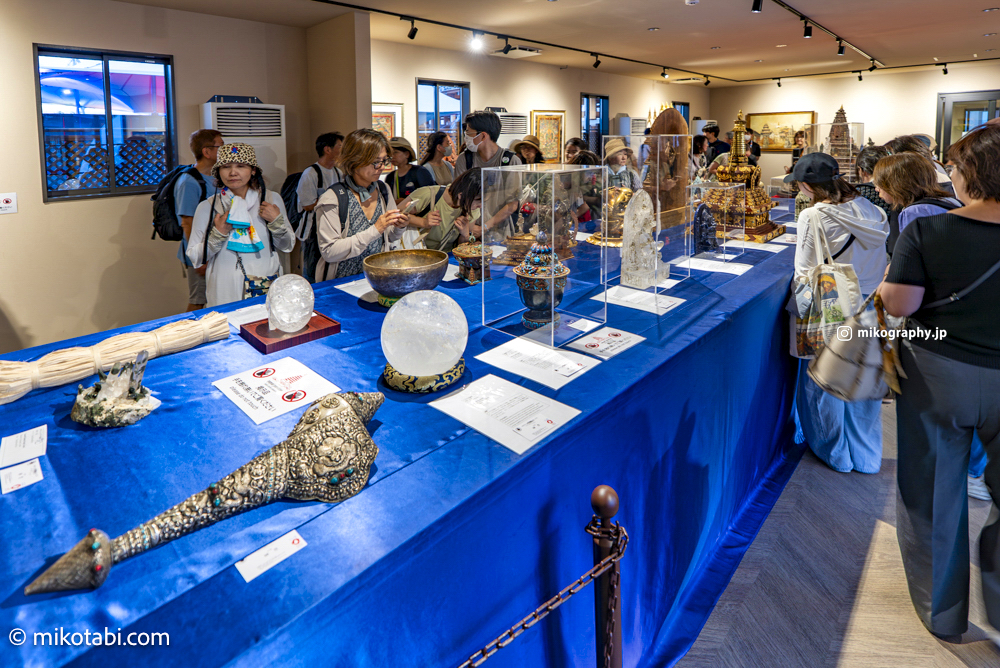 展示室に入ると、ブッダ像や伝統的な置物、工芸品がずらりと並び、