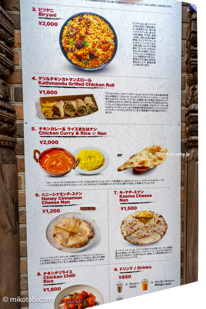 レストランではカレーやモモ(ネパール餃子)、ビリヤニなどが注文でき、 私はチキンビリヤニ(2,500円)をいただきました。