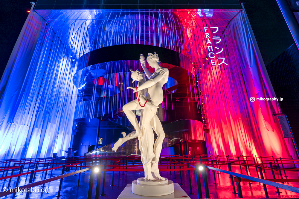 波打つようなカーテンデザインの外観が美術館のように印象的なフランス館。