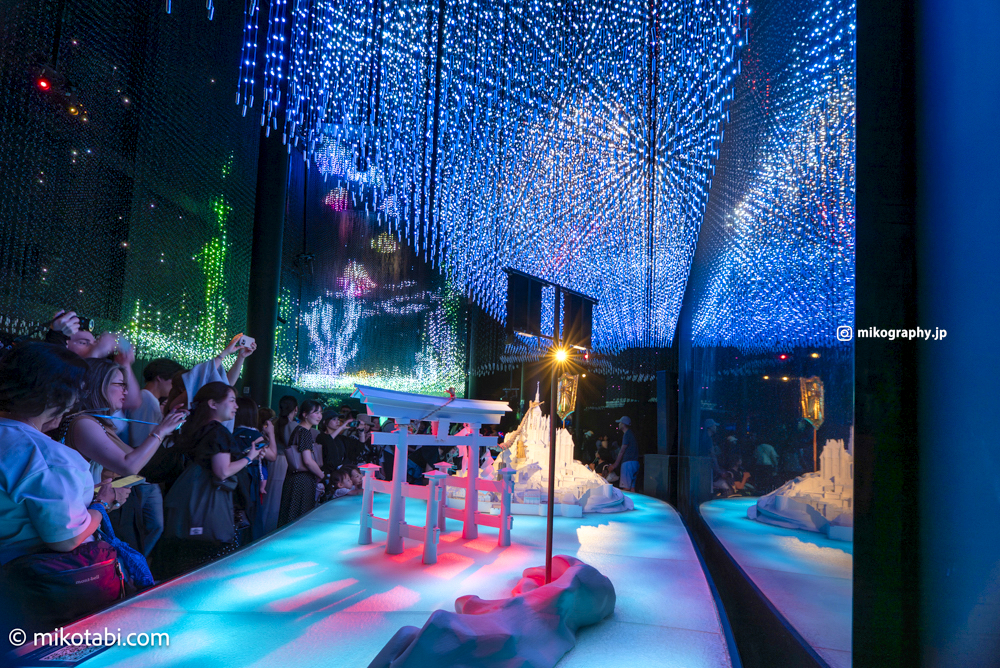 上下の鏡面に反射して、まるで無限に続くような幻想的な空間に✨