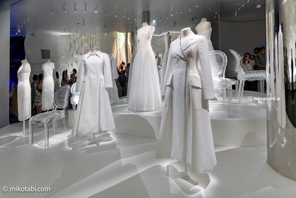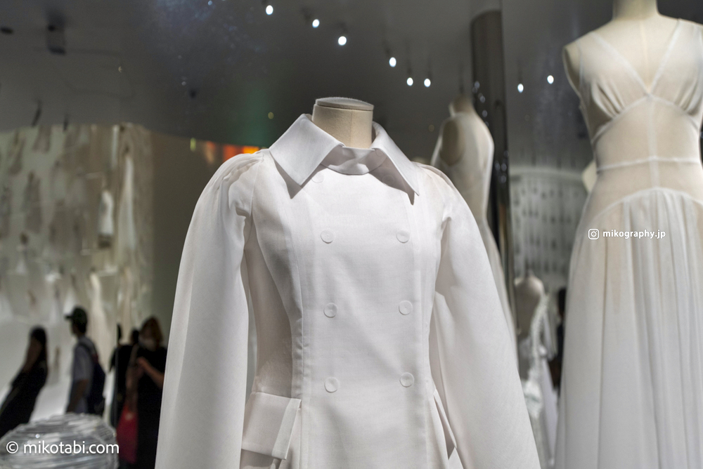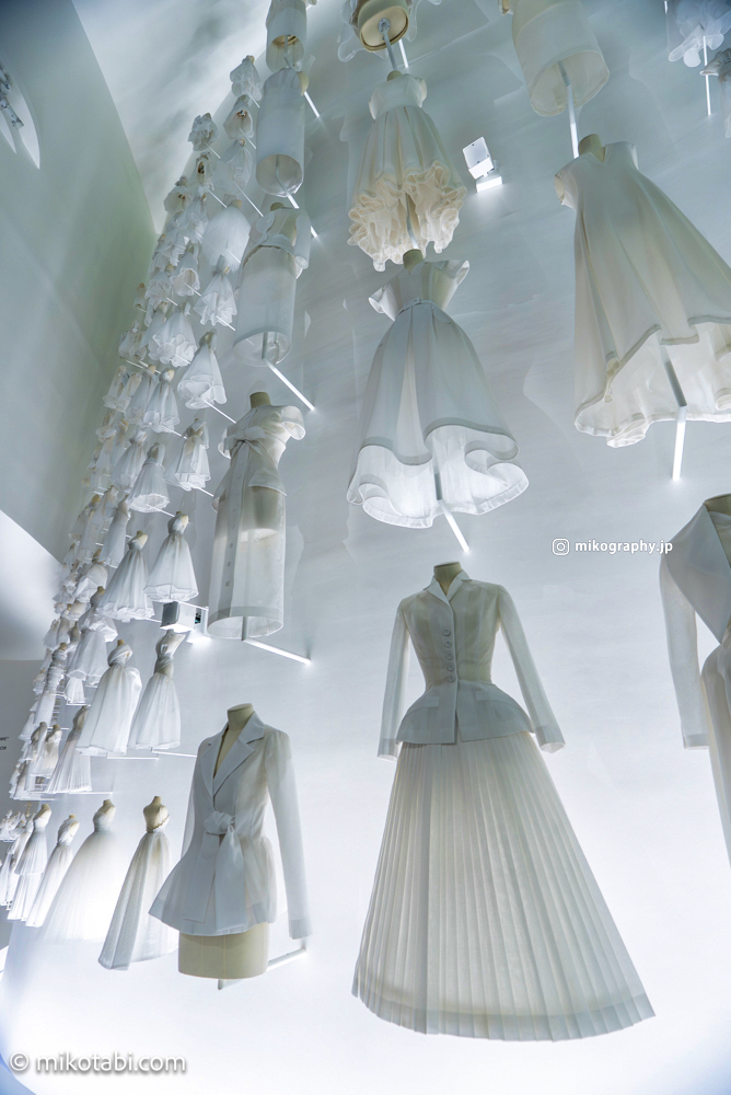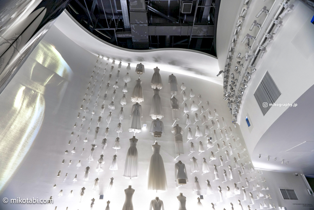 特に、2階分ほどの高さの壁いっぱいに並ぶ、400点を超える手のひらサイズの真っ白なトワールドレスは圧巻。