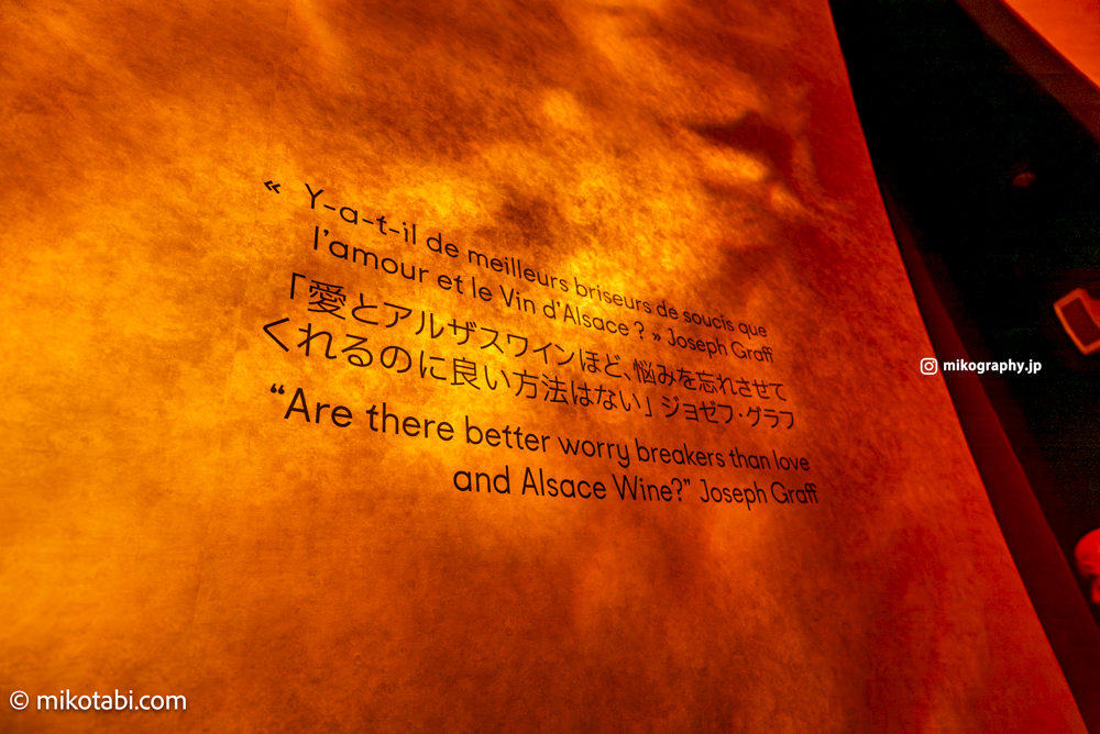 館内へ戻ると、ワインボトルの形をした入口の先に、ブドウのシャンデリアと鏡面テーブルの幻想的な展示が✨