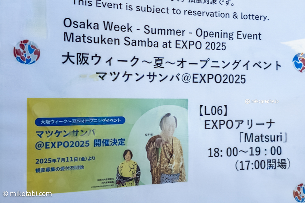 【EXPO2025通期パス15回目!】今回は万博会場で夏の大阪ウィークが開催されるのを記念し、オープニングにマツケンサンバがやってくるということで見に行ってきました!🌈🎡