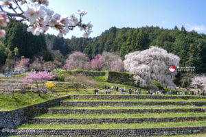 高さ約13mのしだれ桜は、石垣の上に立つ迫力ある姿が魅力✨
