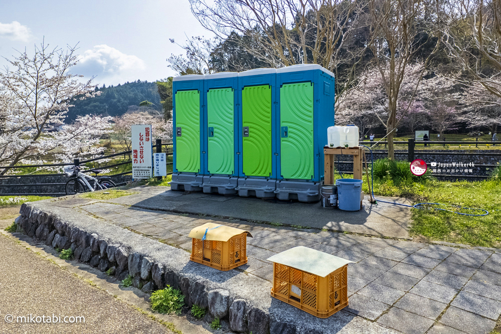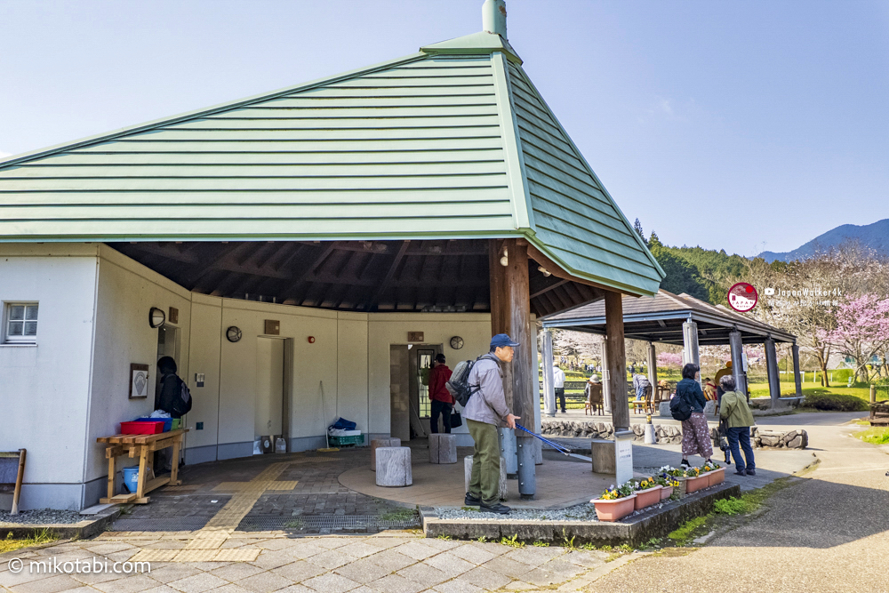 周辺にはトイレが整備されており、建物内のものと屋外トイレが2か所利用できます。