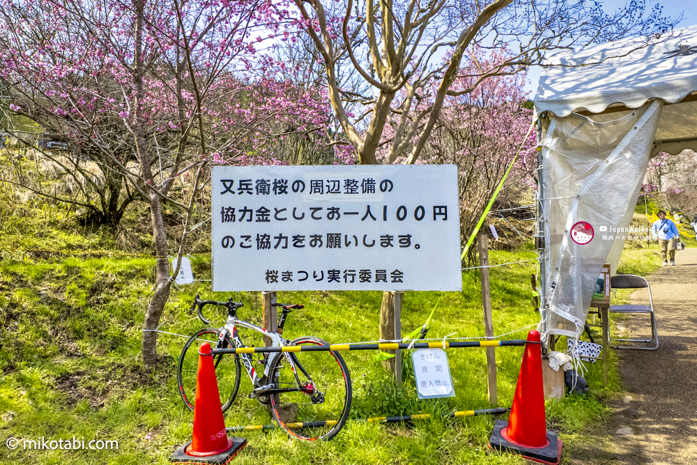 通行時に桜の保護・維持のための協力金(100円)が必要です🌸