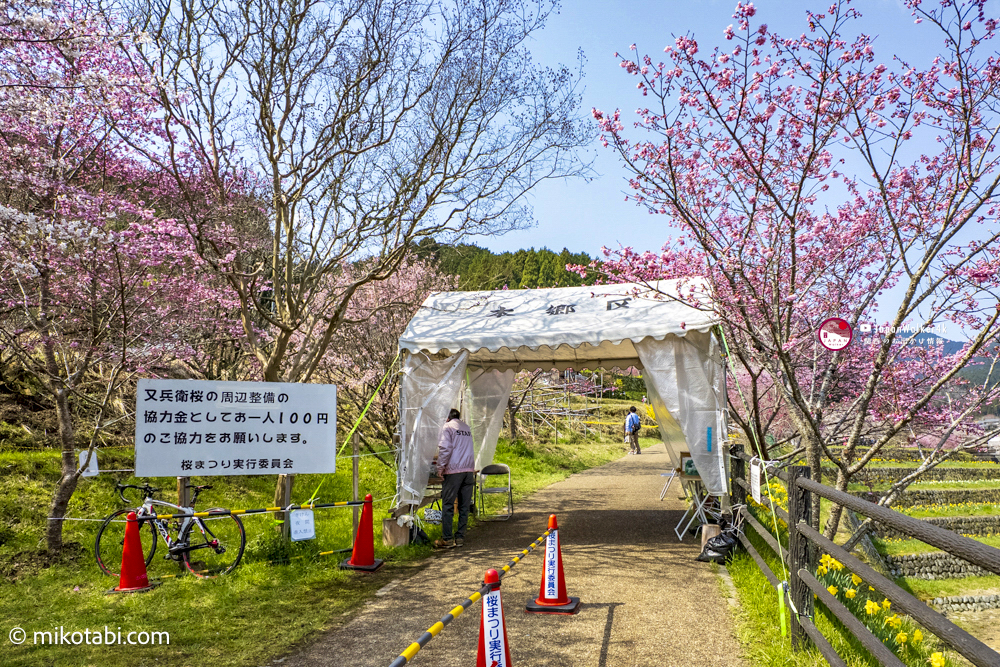 又兵衛桜を見るには、入口のテントを通る必要があります(2か所あり)。