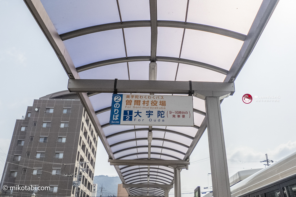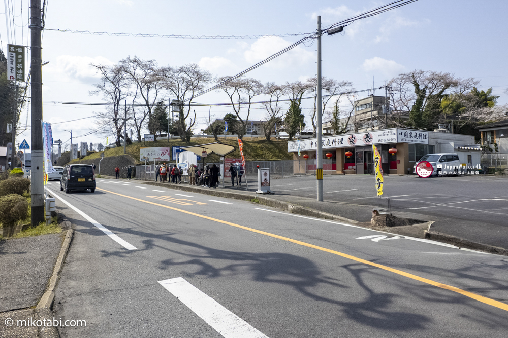 帰りのバスは向かいにあります。後ろに中華料理屋さんがあります。