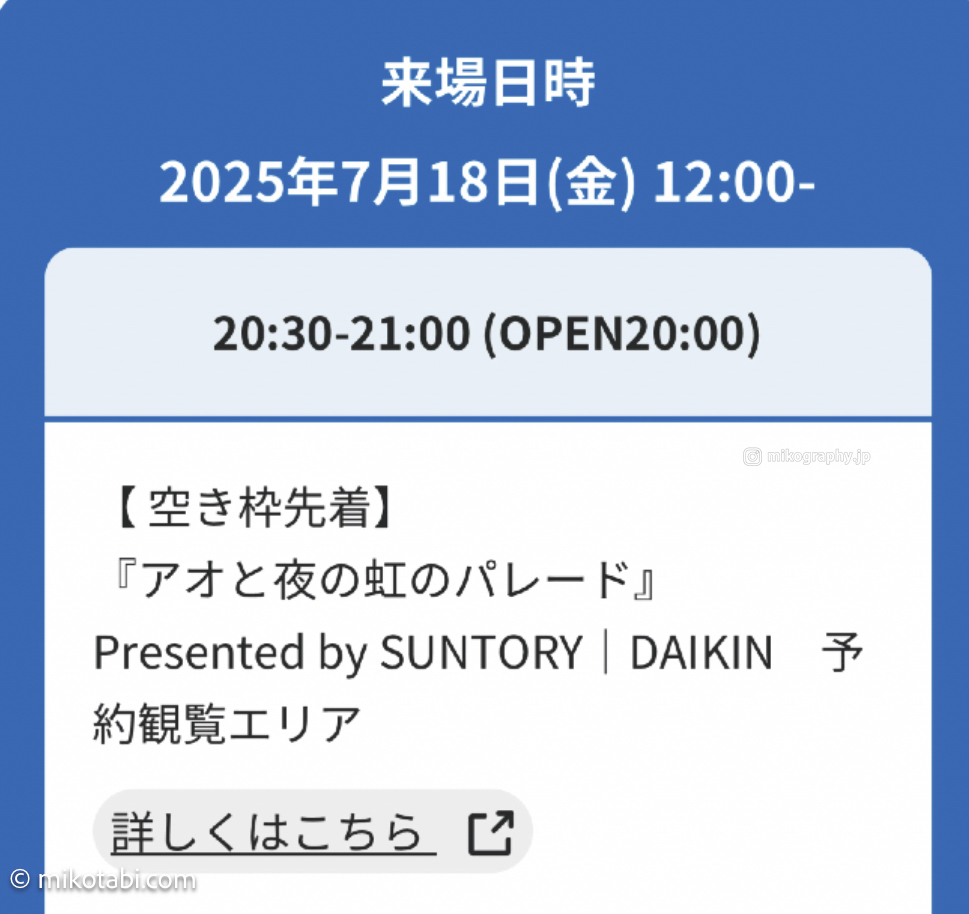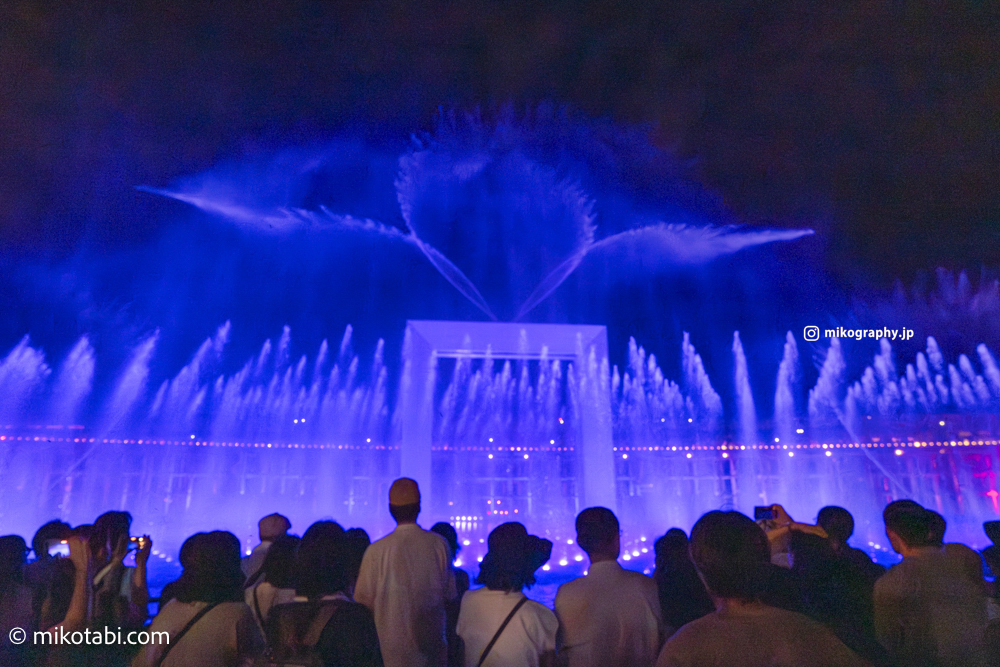這一天是為了觀看【20:30開始】的《水和空氣的奇蹟秀“藍夜彩虹遊行”》(提前7天預約抽選),所以特地傍晚才前往萬博會場✨