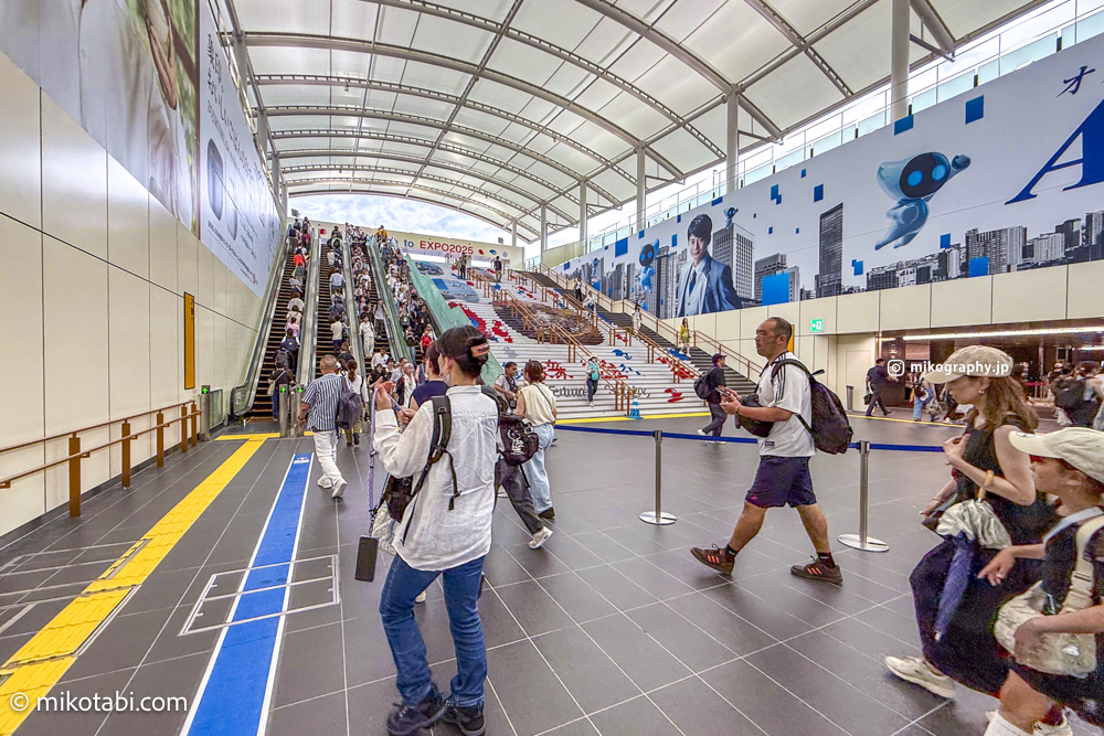 大約在 17:45 抵達夢洲車站。因為正好是上班族與遊客返程的時段,本以為剪票口和通道會人潮擁擠,但實際上比想像中順暢許多!