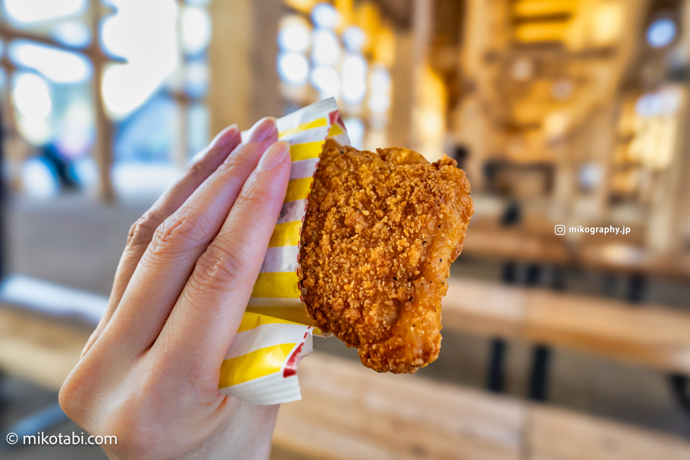 只要240日圓(含稅),去骨、份量剛剛好!外皮酥脆,裡面多汁,真的是最適合當小點心 💯