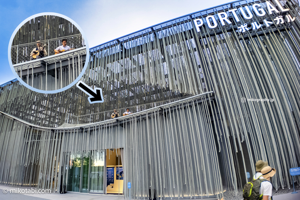 一進入萬博會場,本來打算直奔水之廣場,沒想到剛好在葡萄牙館前遇上了現場演奏活動,於是停下腳步欣賞了一會兒 🎻